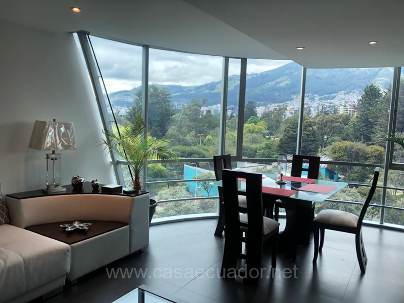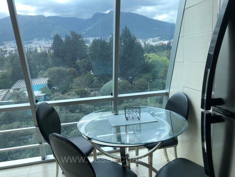 Rento Departamento full amoblado de 136 m2 con excelente vista al parque la Carolina. ubicado en la parte financiera de quito y a 4 min del Tunel Guayasamin. El departamento se encuentra en plena av. Shyris tiene vidrios insonoros (no se oye ruido)