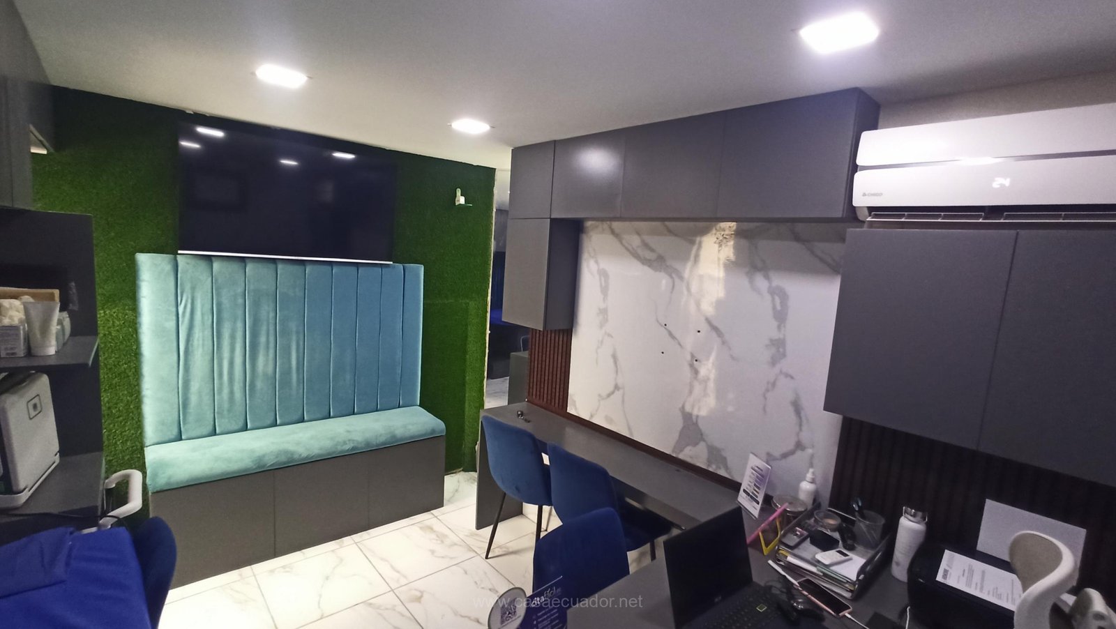 Escritorios,sillas, aire acondicionado, camilla, tv, impresora, computadora , sala de espera amoblada .