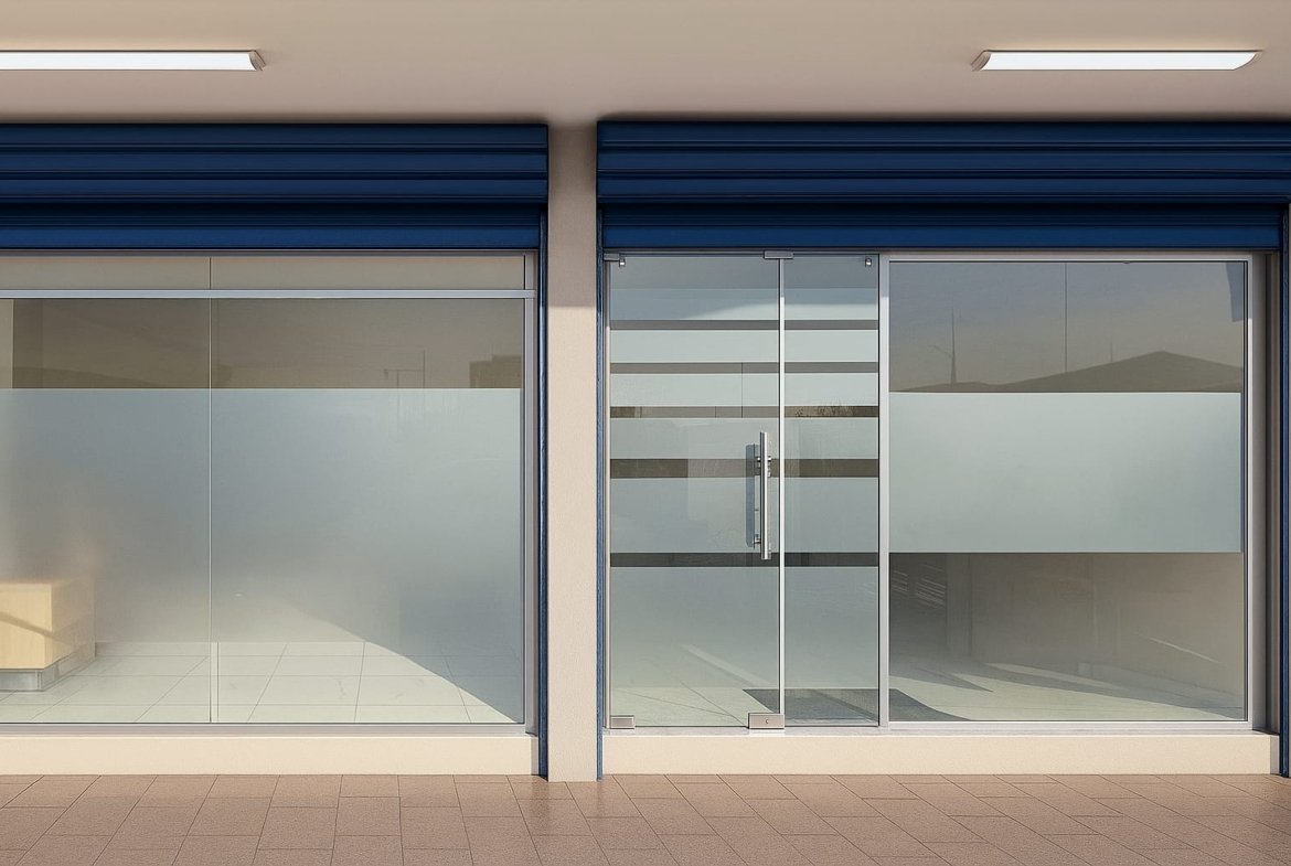 Amplia fachada con mampara de vidrio