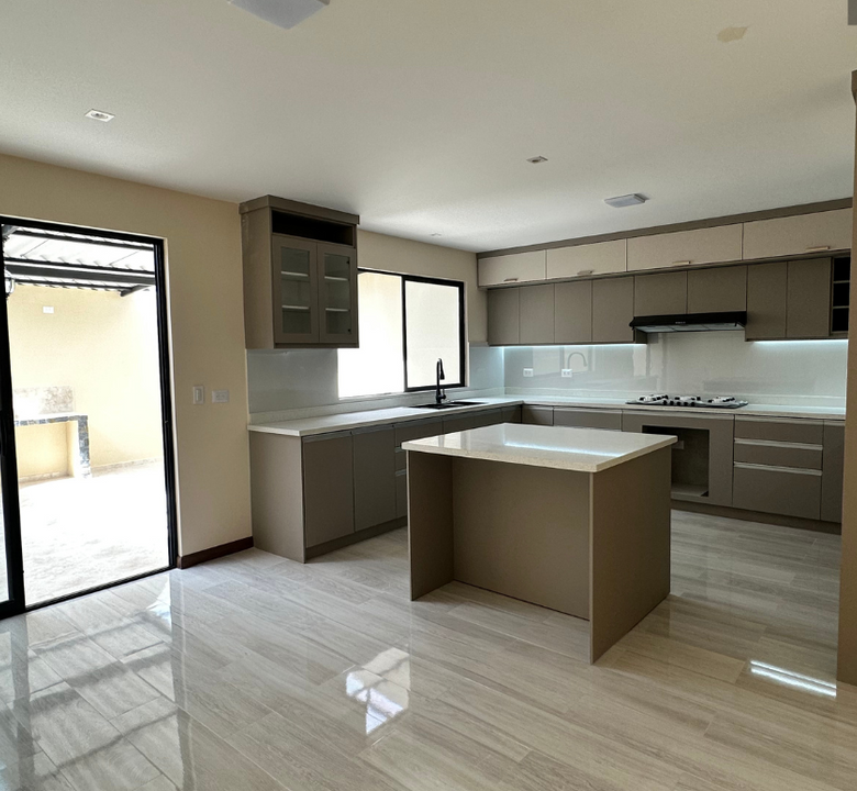 170 m2 de terreno, 180 m2 de construcción, 4 habitaciones, 3 baños, sala, comedor, cocina, sala de tv, área de lavandería, 2 garajes, área de asados .