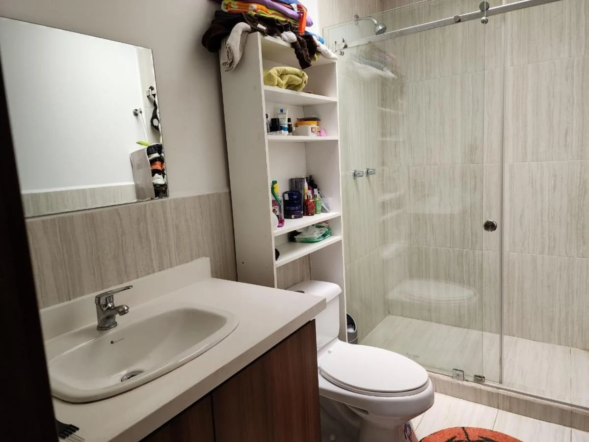 balcón y un baño completo compartido