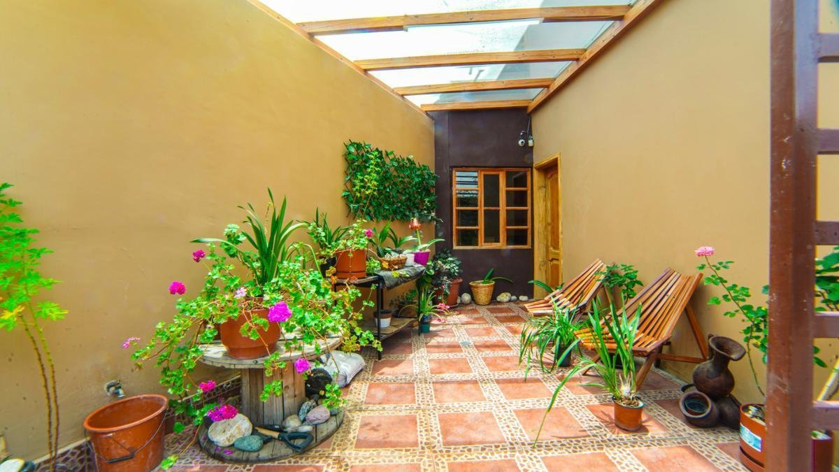 TERCERA PLANTA Terraza con techo de vidrio, sala de estar.