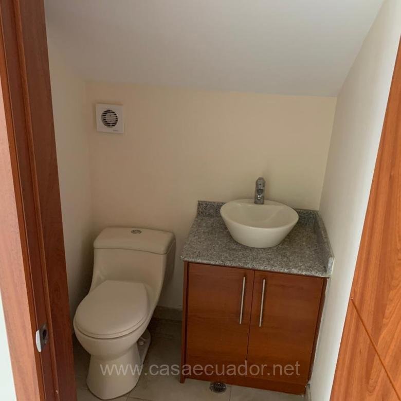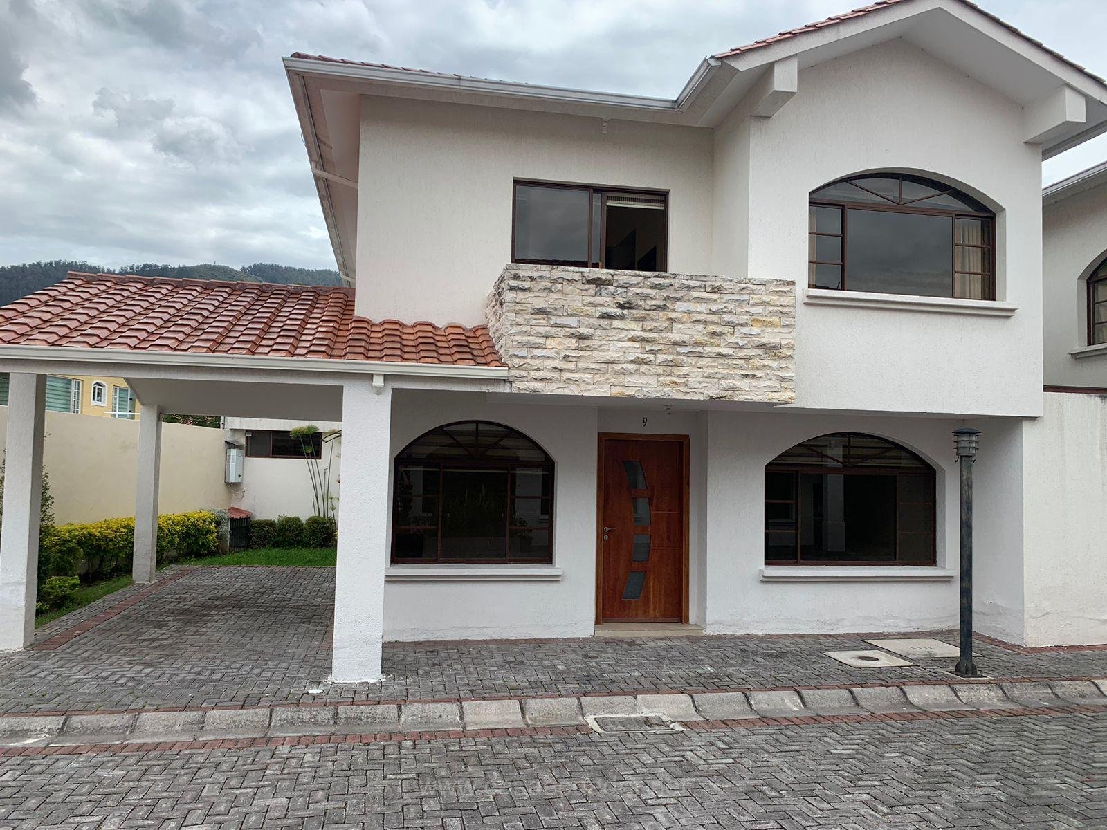 Casa de 2 plantas, 3 Dormitorios, baño social, 2 parqueaderos, jardín.