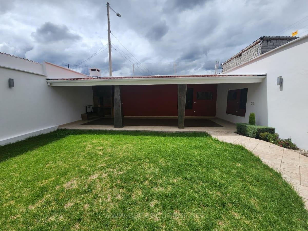 Área verde posterior, pérgola, y amplia barbacoa,