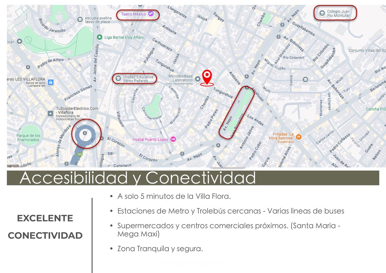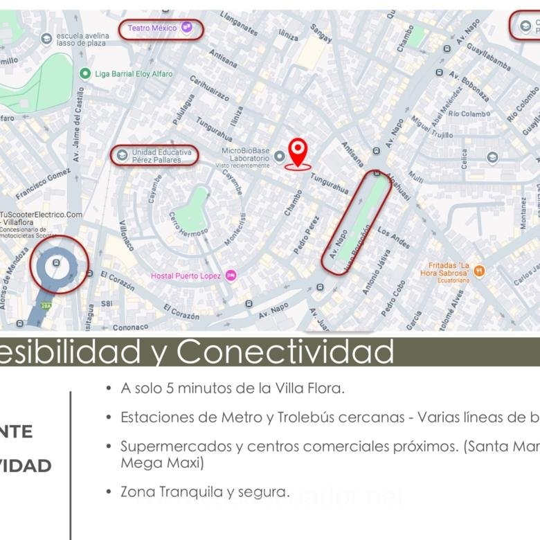 Conectividad perfecta: A solo 5 minutos de la Villa Flora, estaciones de Metro y Trolebús, con supermercados y centros comerciales cercanos, Varias lineas de buses de transporte público a disposición
