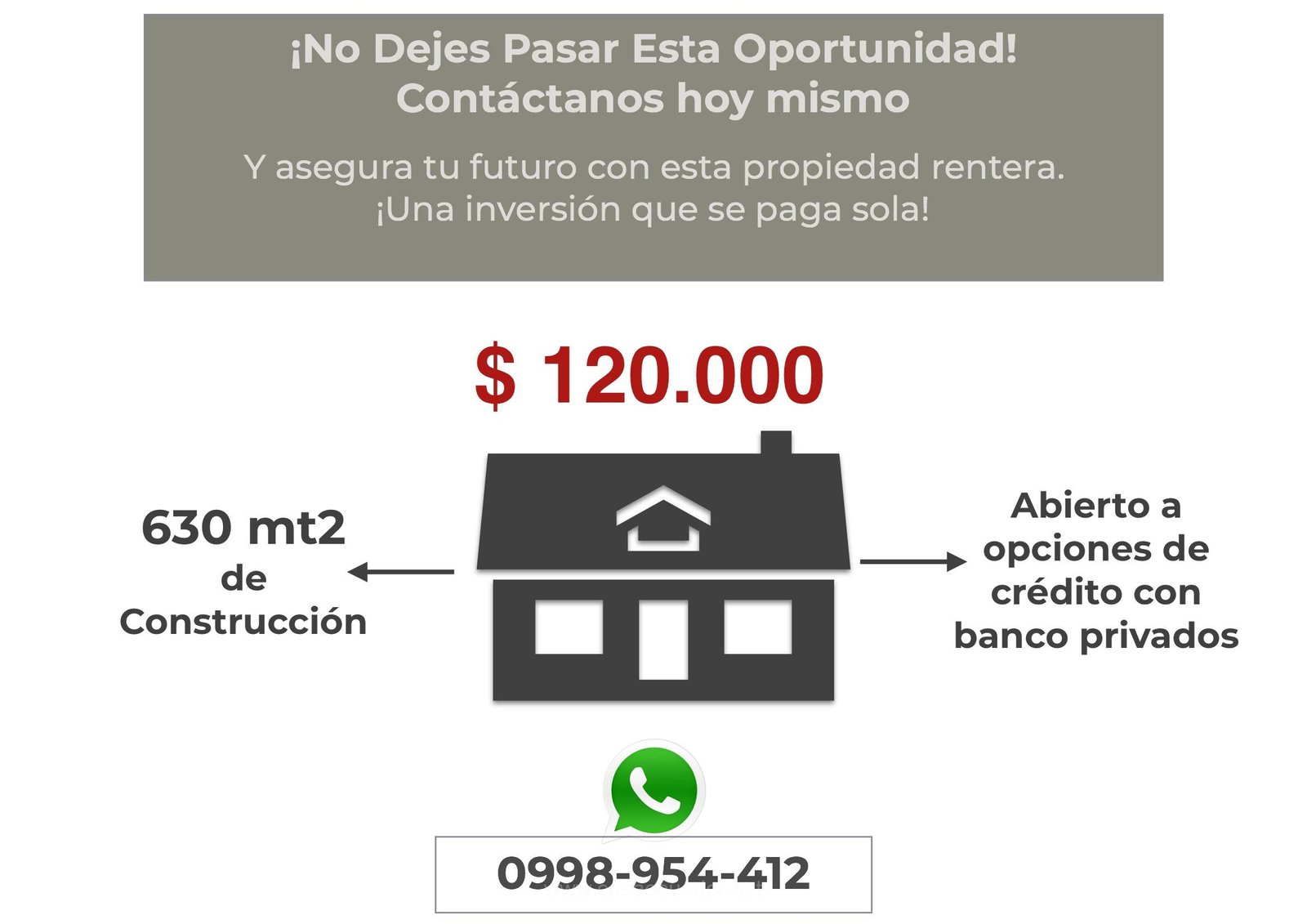 📞 Contáctanos hoy mismo al 0998 954 412 y asegura tu futuro con esta casa rentera.