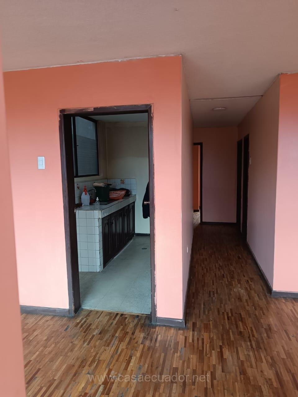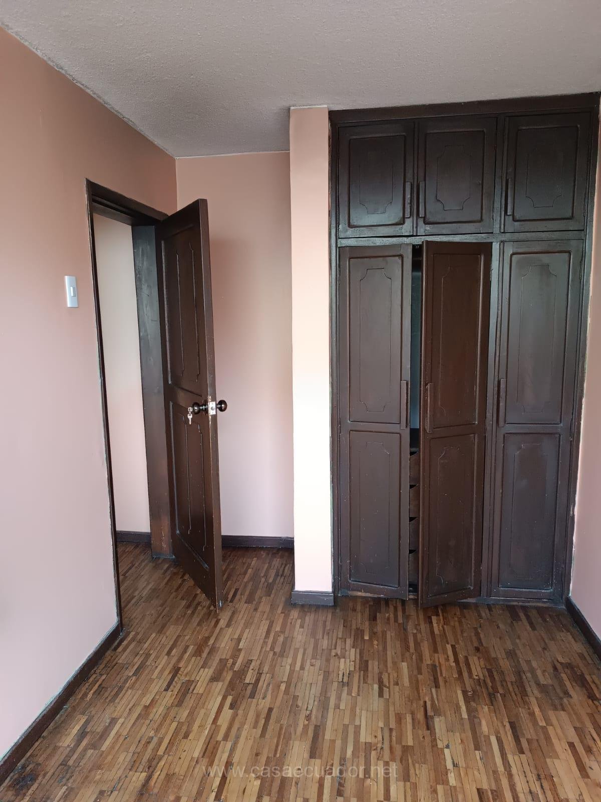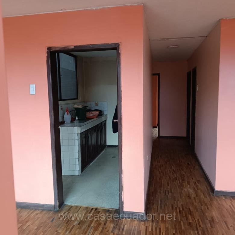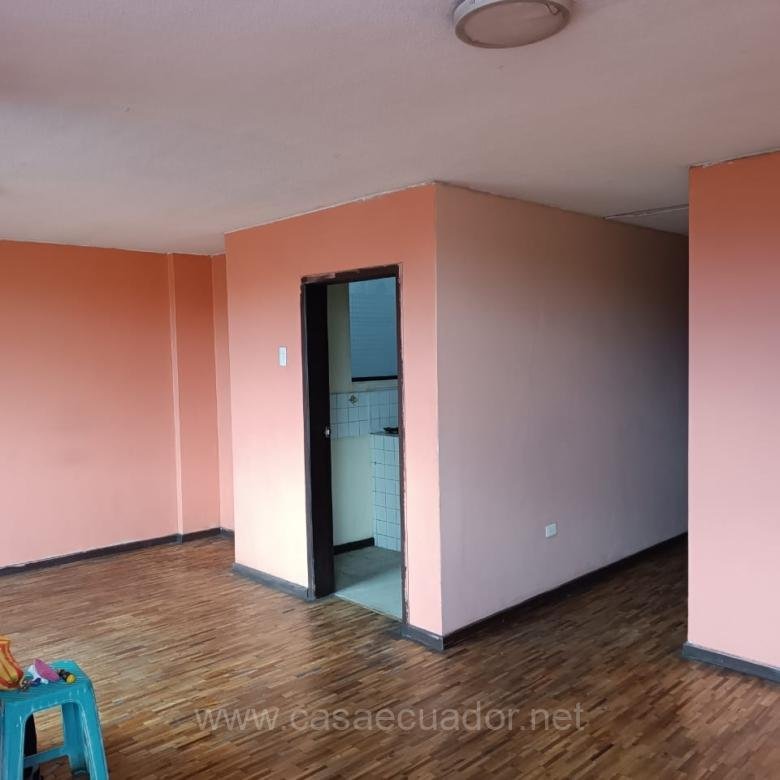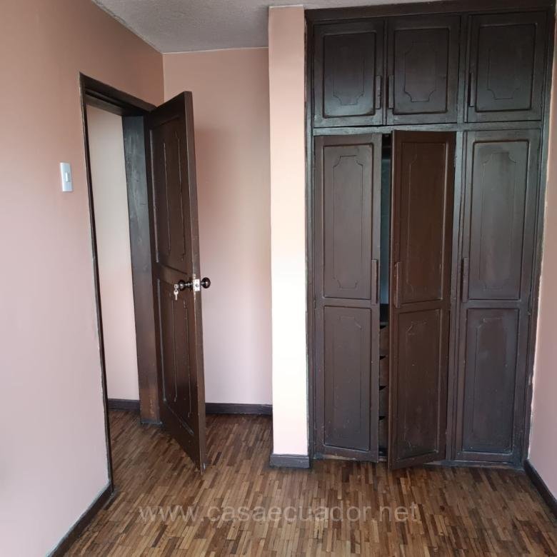 El piso es de parquet excepto la cocina y el baño que son de vinil. Ventanas de aluminio, esta dentro de un conjunto habitacional de 5 torres, sistema de camaras con circuito cerrado, puertas del ingreso al conjunto por medio de tarjeta electronica o magnetica. Tiene acceso a la terraza donde dispone de una piedra de lavar y espacio o tendedero de ropa. El conjunto cuenta con espacio para caminar, y cancha de uso multiple. Asi como tambien un area para ser reservada para fiestas, o programas. La propiedad tiene 30 años de antiguiedad. Precio negociable. NO TIENE PARQUEADERO (GARAJE)