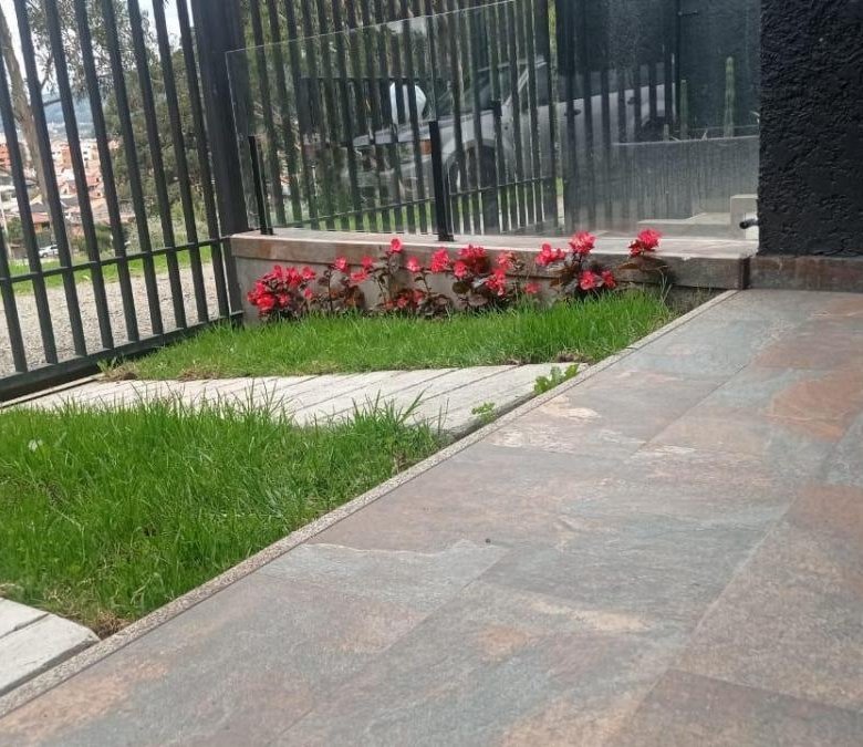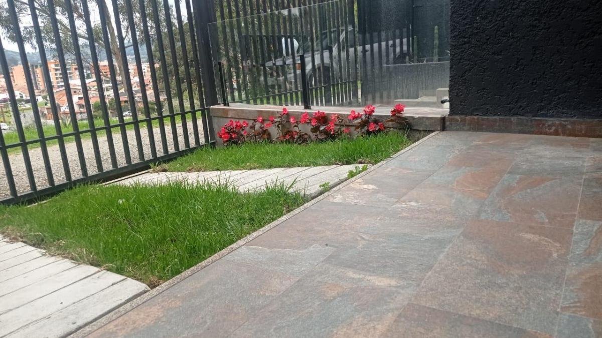 * Terraza parcialmente cubierta con vista al rio Yanuncay.
