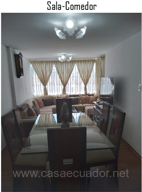 Sala comedor, cocina con lugar para lavadora y secadora.