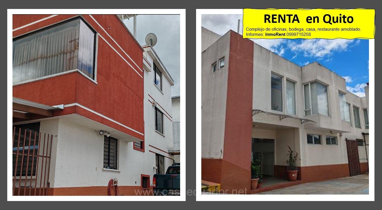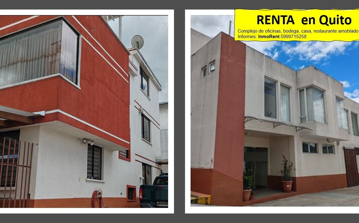 Rento Oficina, dos pisos, planta baja bodega, segundo piso oficinas, Rento Casa con 5 dormitorios, Rento Restaurante amoblado listo para trabajar. Todo en un mismo complejo.