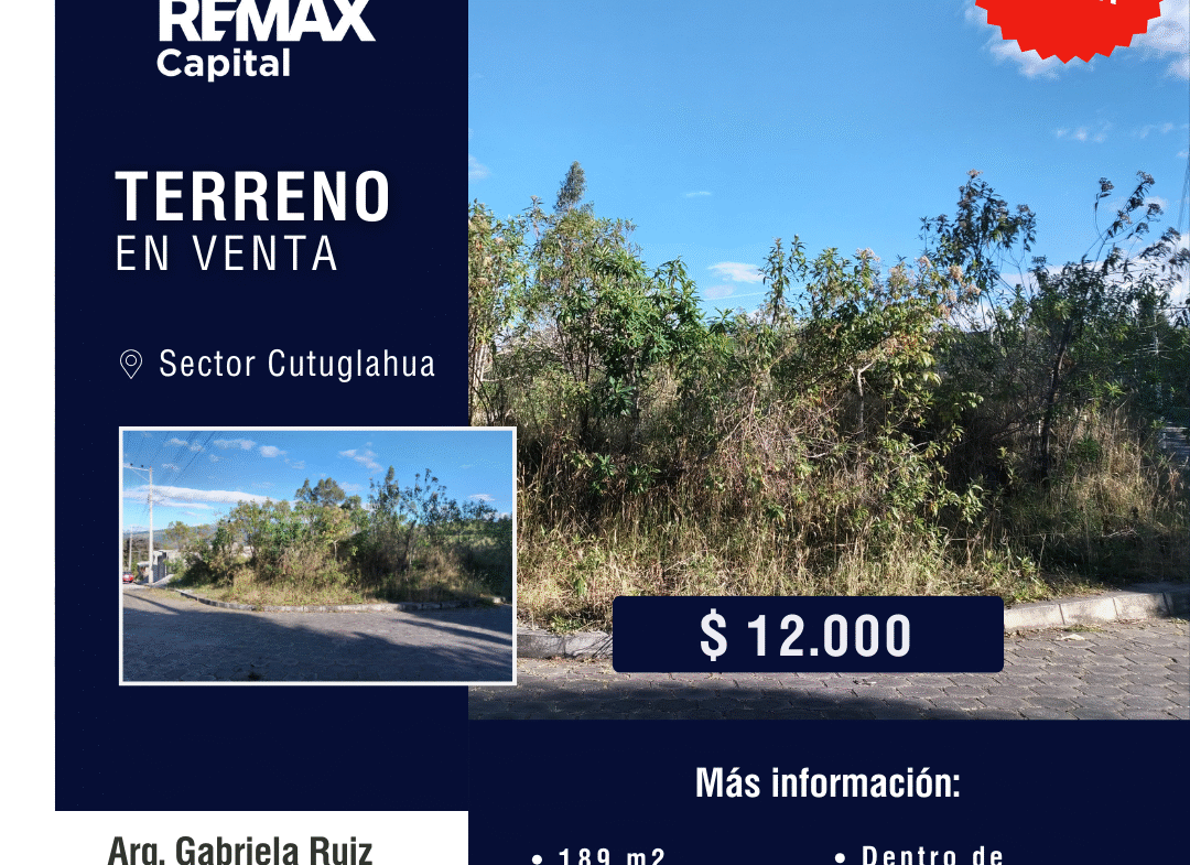 En el sector de Cutuglagua en la Urbanización privada San Cayetano, se encuentra a la venta un Terreno esquinero, a pocos minutos de la Carretera Panamericana Sur cerca de urbanizaciones residenciales en una zona en crecimiento. El mismo que cuenta con todos los servicios básicos.