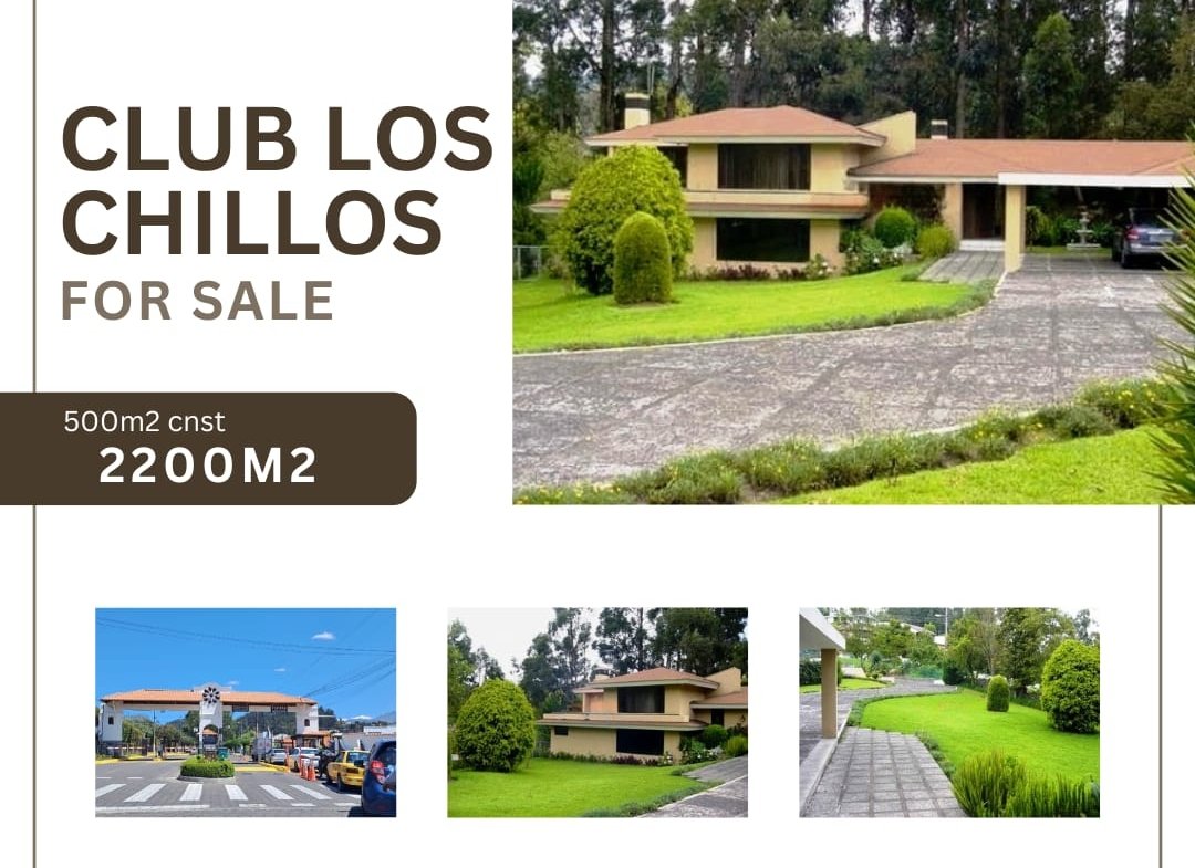 VENDO CASA DE LUJO EN URBANIZACIÓN EXCLUSIVA CLUB LOS CHILLOS 2200m² terreno | 500m² construcción | 4 dormitorios, 3 salas. Amplios jardines. La Urbanización cuenta con Club de Golf, Seguridad 24/7 Vive en comodidad, estilo y exclusividad y sobre todo mucha SEGURIDAD
