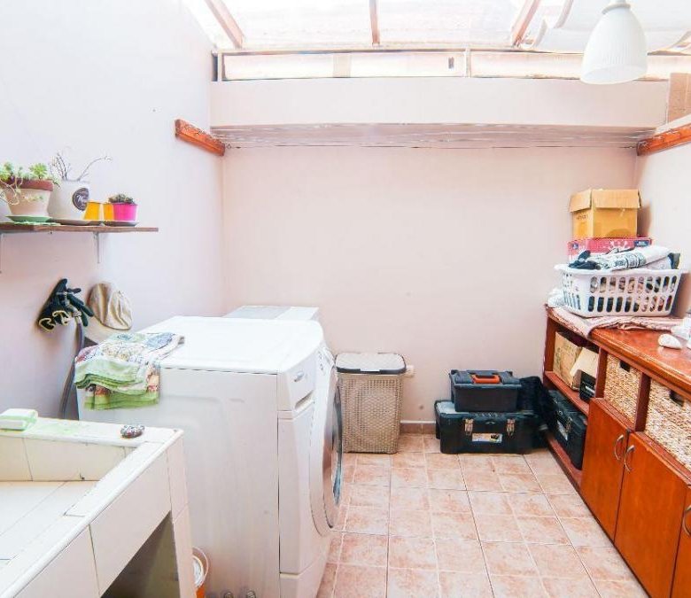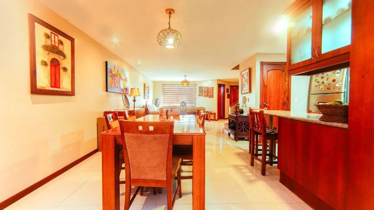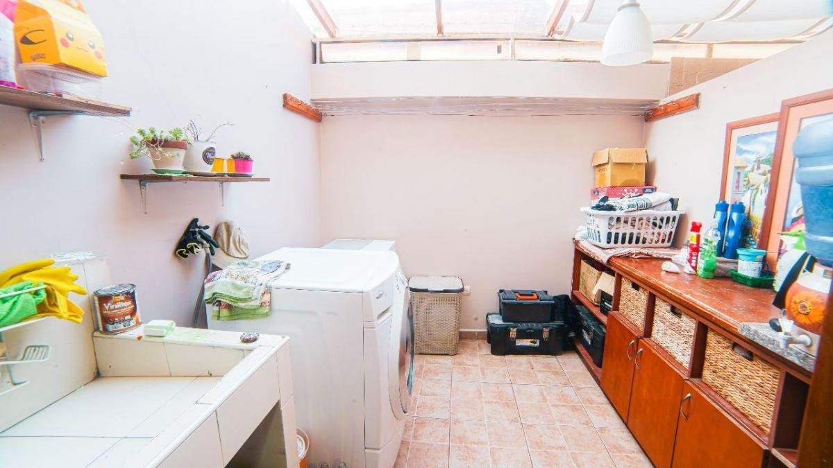 Sala, Comedor, Cocina, sala de estar, 1 baño social, Lavandería con Cubierta, Garage para 2 vehiculos .