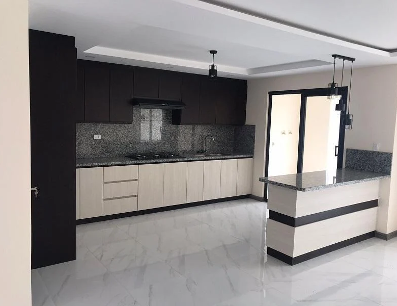 Garaje para 2 vehículos- Sala- Cocina- Comedor- Baño social- Área verde- Lavandería.
