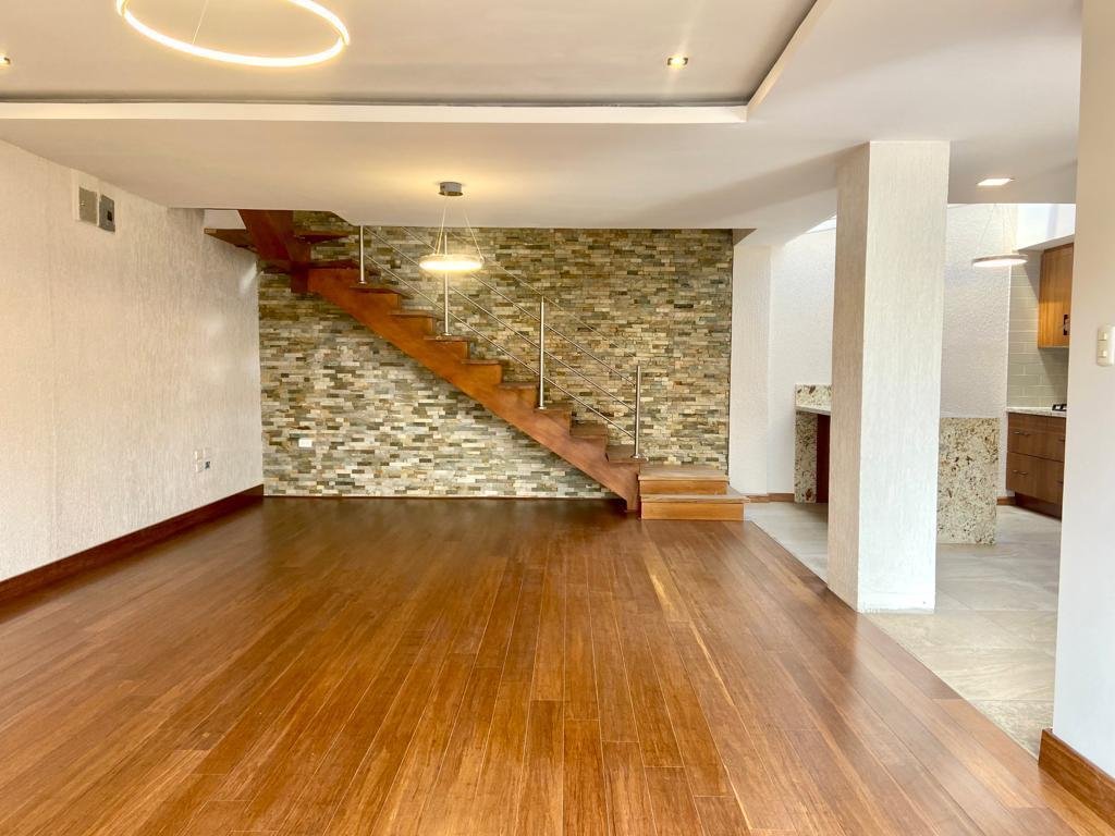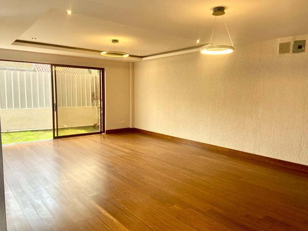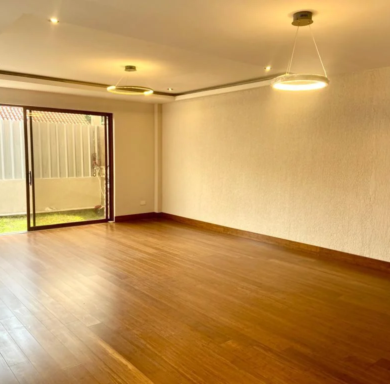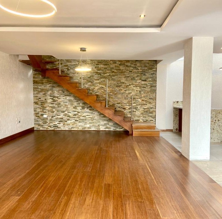Amplia sala con un elegante piso de bamboo, ideal para recibir a tus invitados y disfrutar de momentos inolvidables en familia.